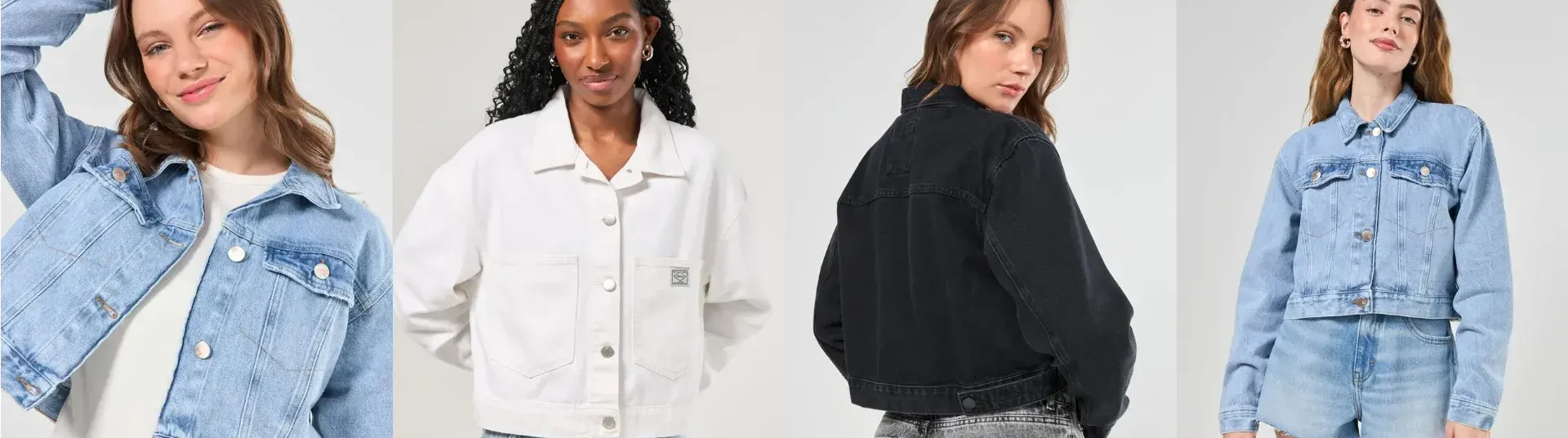 tipos de jaqueta jeans feminina: oversized, cropped e biker